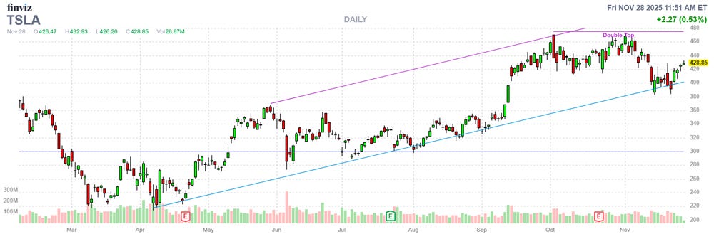 We called out Tesla’s double top a few weeks ago, and in general I’m skeptical of a company who pays its CEO that much and lets him spout off violent rhetoric on the regular.